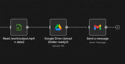 The finished video is uploaded to Google Drive, and an email notification is sent when processing is complete.